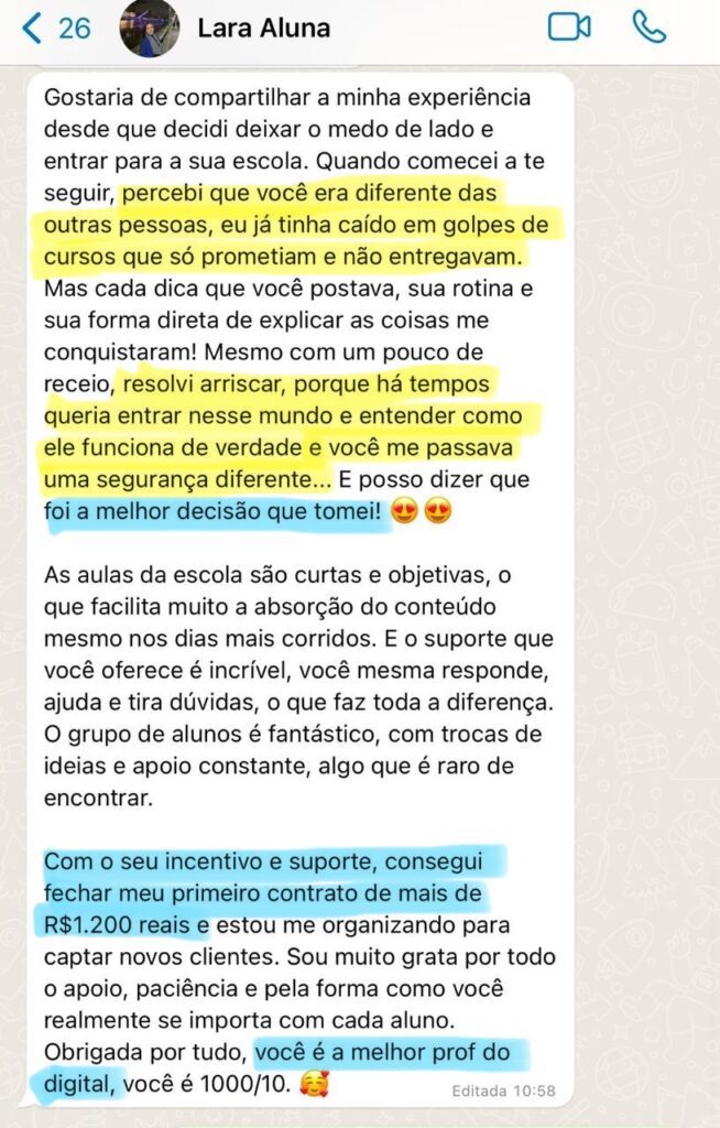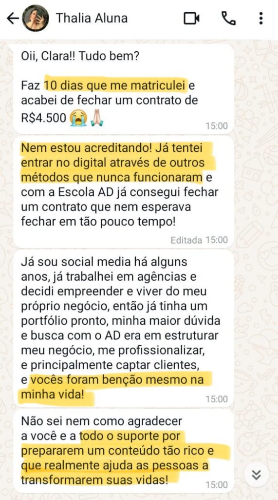 A Thalia já tentou de tudo com outros métodos e nunca deu certo, mas em uma semana sendo aluna fechou um contrato de R$ 4.500 reais.