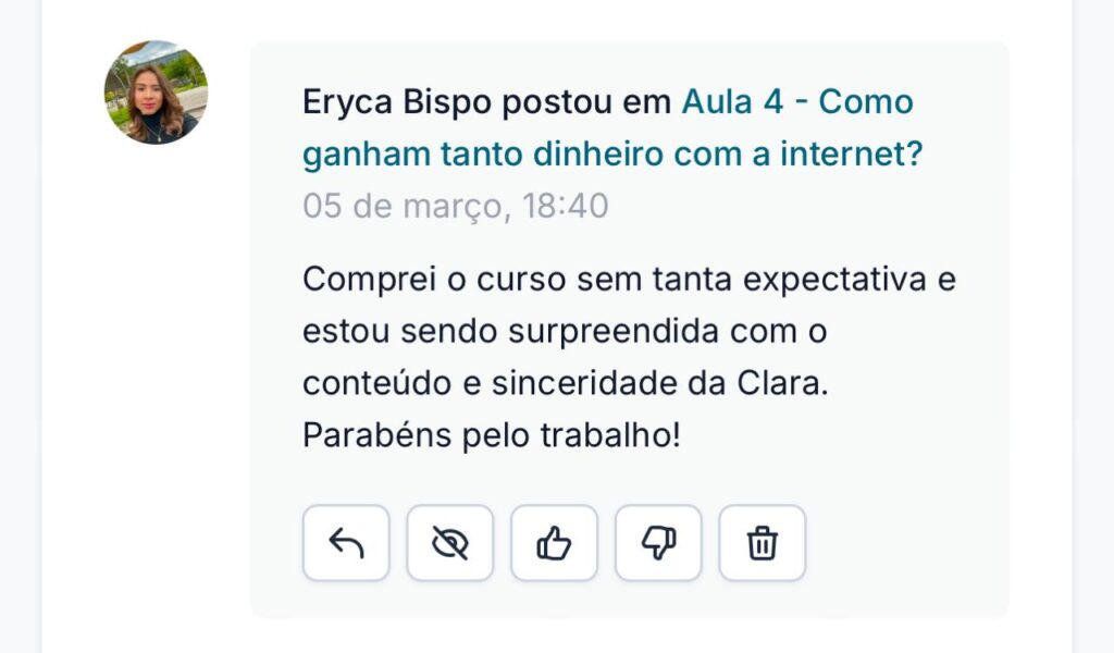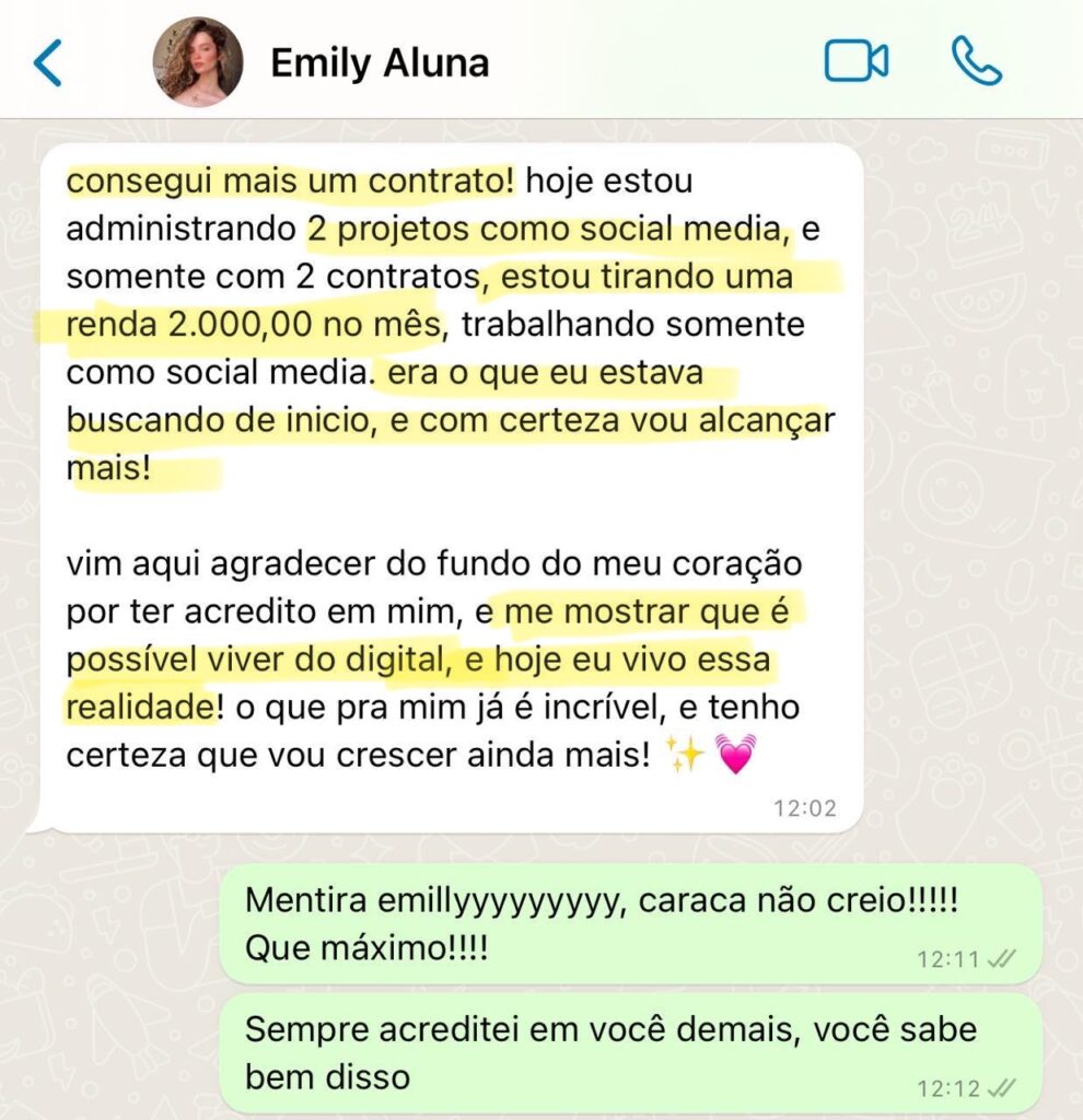 A Emily conseguiu uma renda de R$ 2.000 reais fixos todo mês e vive a realidade de empreender no digital.